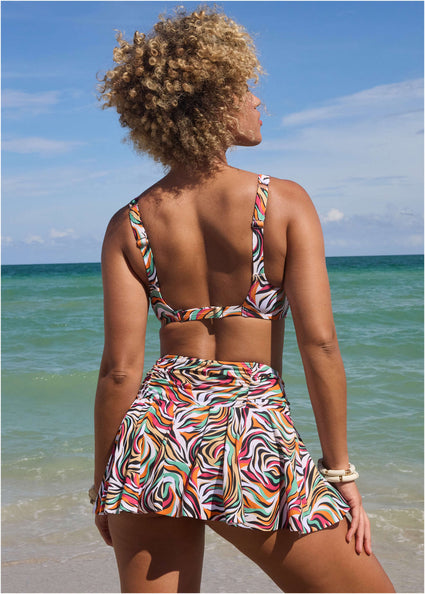 Craving a classic look? Reach for triangle bikini tops with flirty side ties and customizable coverage, perfect for smaller busts. When you want an extra lift, choose from a variety of push up bikini tops, made molded cups and functional underwire for a little more oomph. And, if you’re firmly against tan lines, we’ve got you, with bandeau bikini tops that are great for smaller and medium busts looking for more sun and less support.