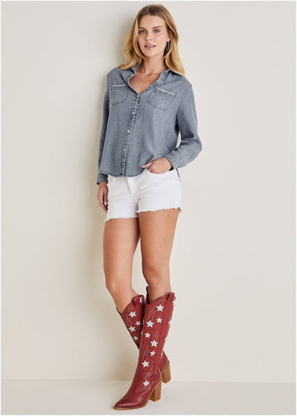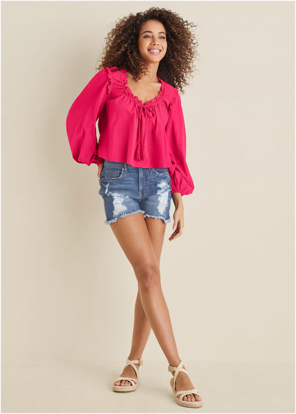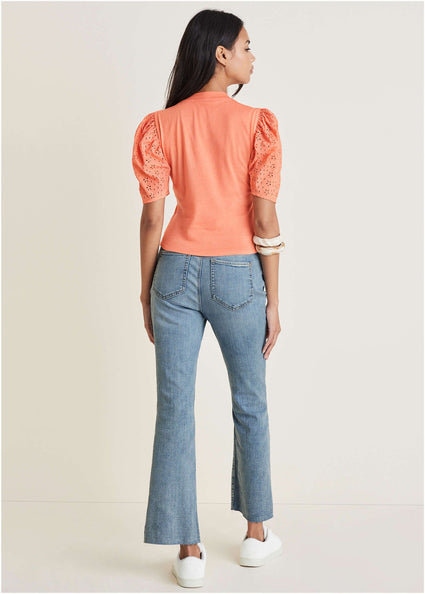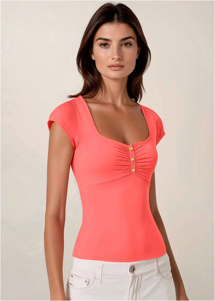 These aren’t your average t-shirts, either. Women’s blouses have evolved past boring basics, with feminine cuts that surprise and delight with ruching, cutouts, fun sleeves, and more.